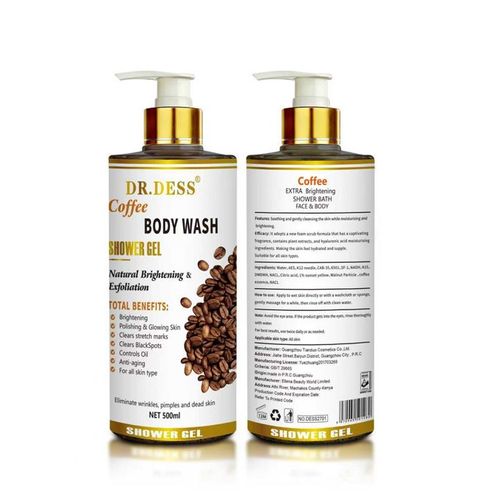 DR.DESS Coffee Body Wash Exfoliating Foaming Shower Gel Removes Dead Skin 500ml nourish the skin and improve the moisture barrier provides a rich lather nourish the skin and Refreshing Scent