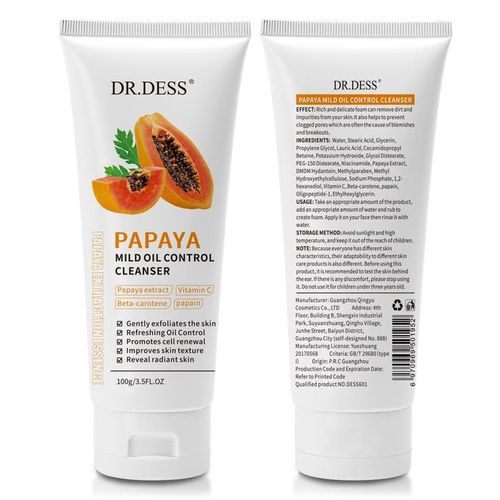 DR.DESS Papaya Face Cleanser Mild Oil Control Cleanser improves skin texture reduce hyperpigmentation Hydrates the skin 100g gently exfoliates the skin , refreshing oil control