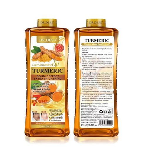 DR.DESS Turmeric Body Oil Double Effect Brightening Oil Clear Dark Knuckles Brighten Dark Armpits Dark Thighs makes Skin Silky Smooth 270ml