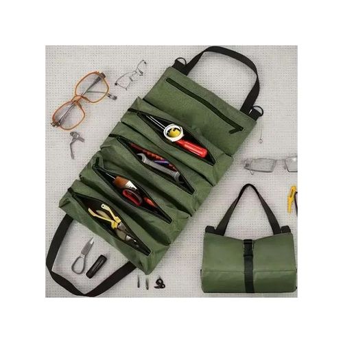 Roller Bag Tool Roll Bag, Canvas Wrench Tool Bag, Multi-Purpose Tool Roll with 5 Zip Pockets, for Plumbers, Craftsmen and Electricians, Green
