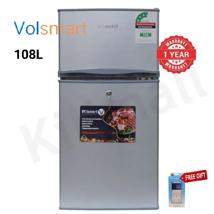 Volsmart VL-BCD108 Compact Double-Door Refrigerator, 108L with Lock silver 108L
