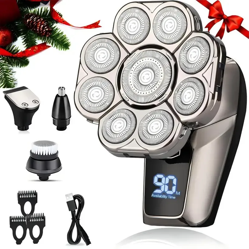 6 in 1 Electric Head Shaver, 1 Box Waterproof Wet dry Grooming Shaver Accessories, Cordless Rechargeable Bald Head Razor for Home & Travel Gift, Multifunctional Epilator
